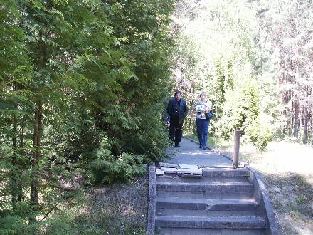 | Iryne and mayor at Kolki holocaust memorial
