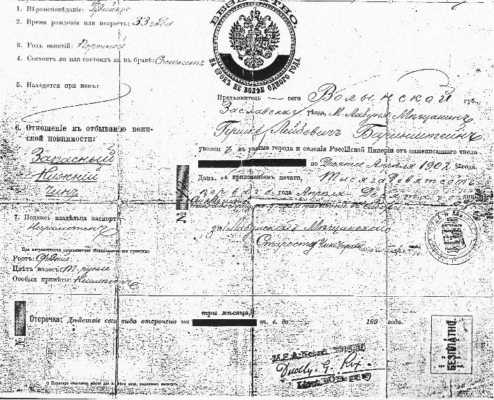 - ♦ Travel Document of the Russian Empire