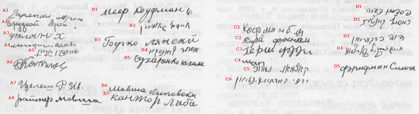 | 1 | Zarecsky Aron Зарецкий Арон | Kofman Meer Кофман Меер | Kofman B. S. Кофман Б.С. | Pastzein Debora Пасцейн Дебора |