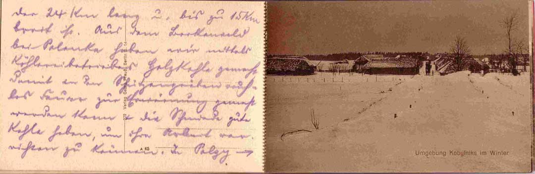 This is Polanka belonging to my District (Staffelbezirk), which is 24 km in length and up to 15 km wide. From the birch-forest near Polanka we have made coal through charcoal burning, so that we can have warm fires in the trenches and the blacksmiths have good coal to do their work. |