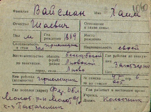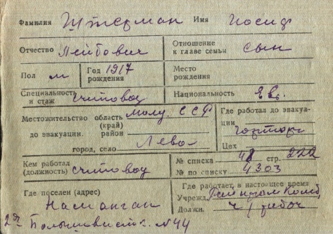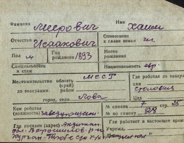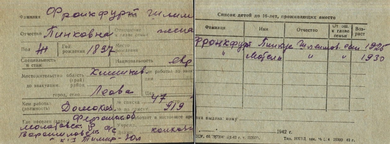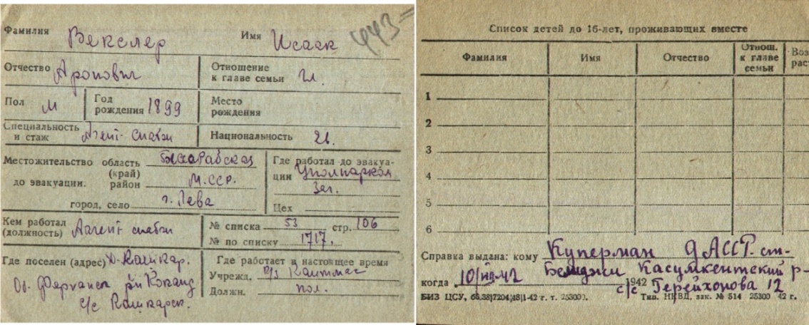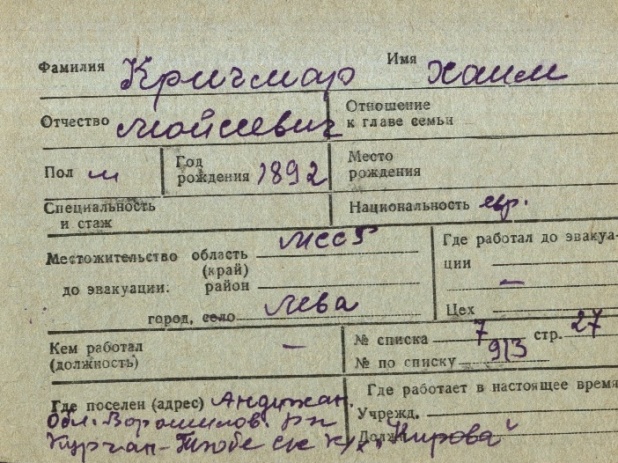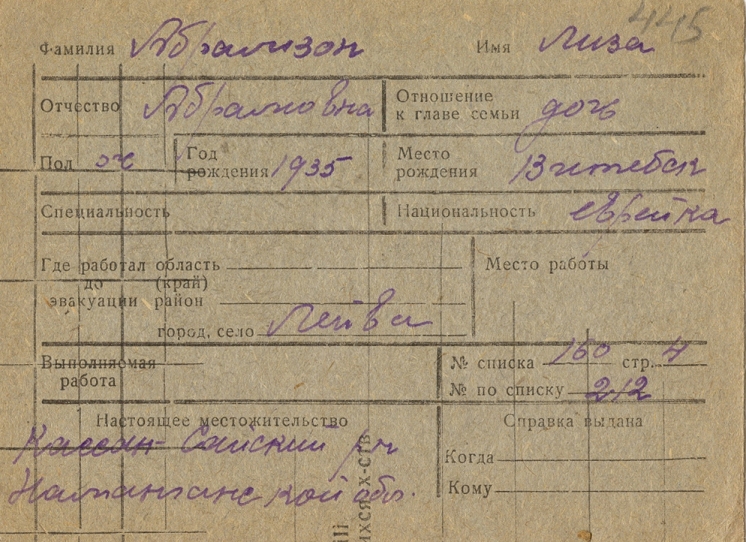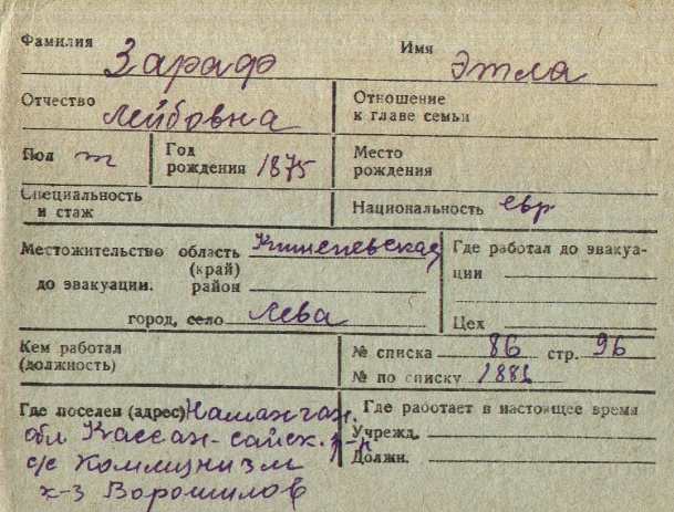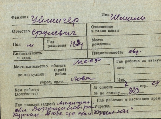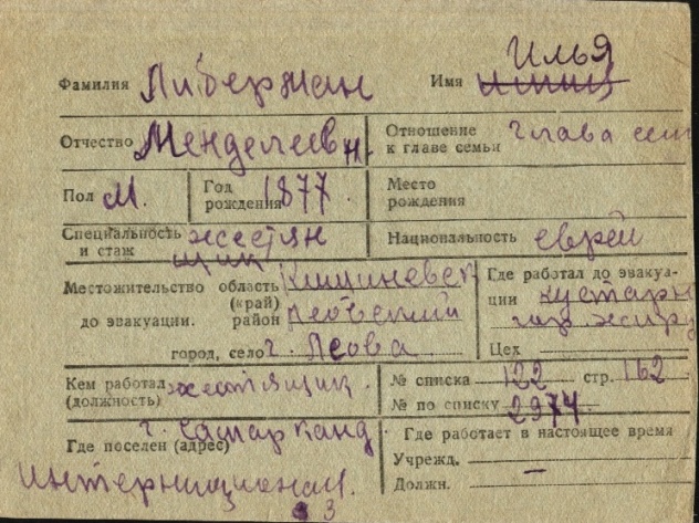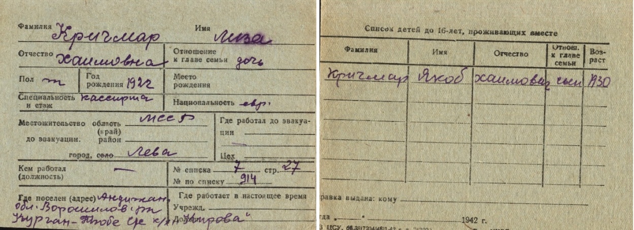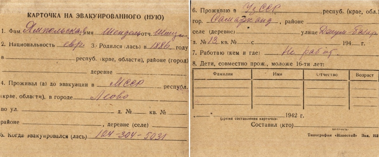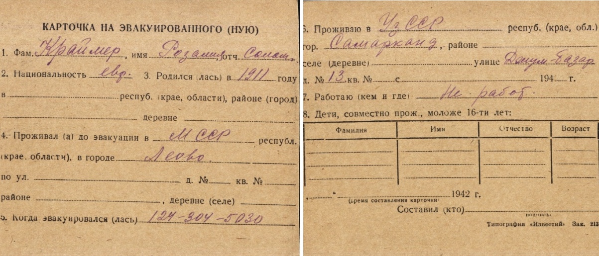 registration cards of Jewish evacuees and refugees