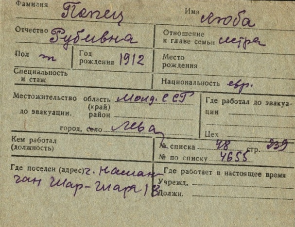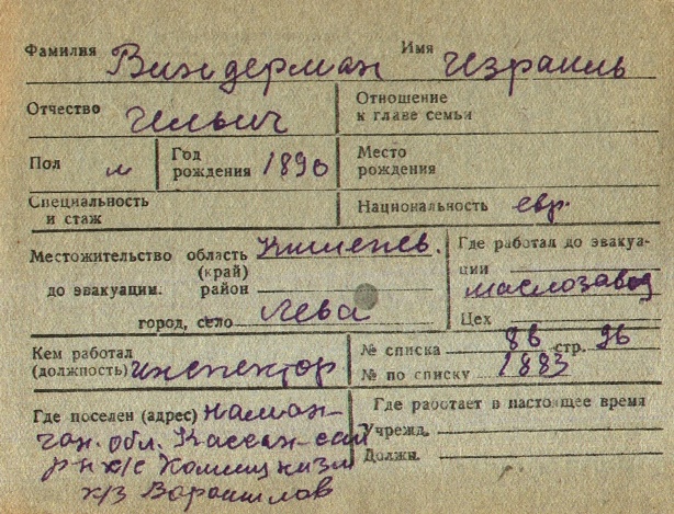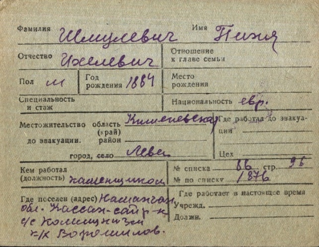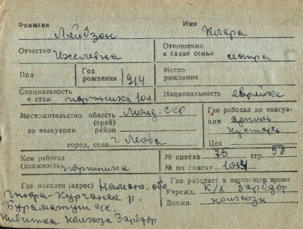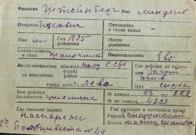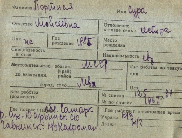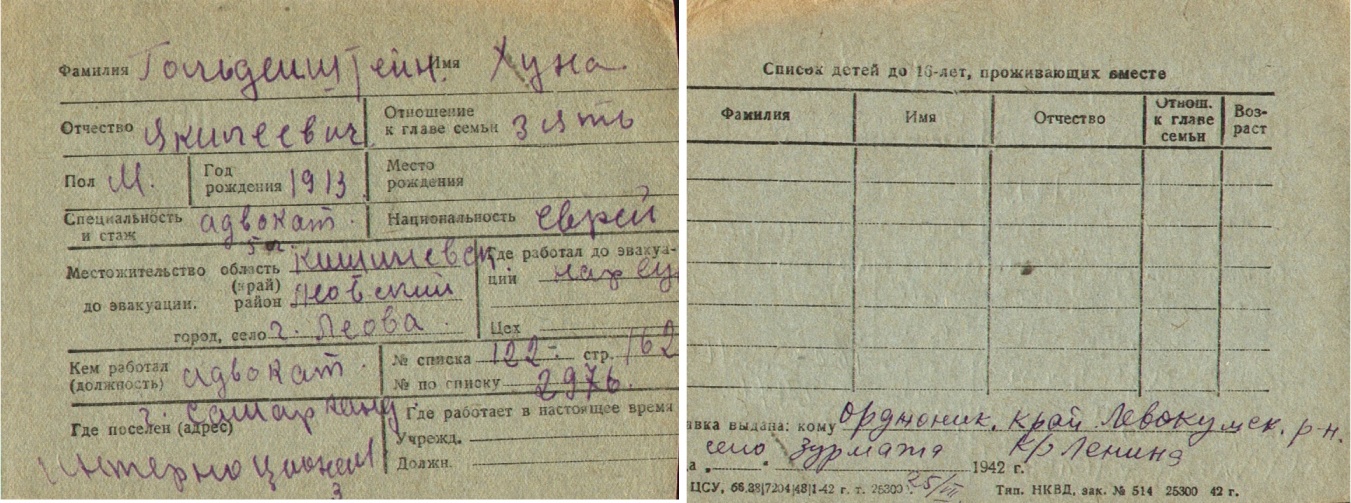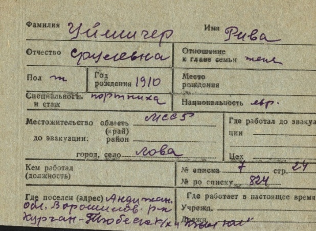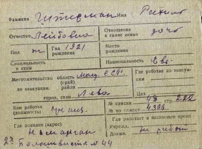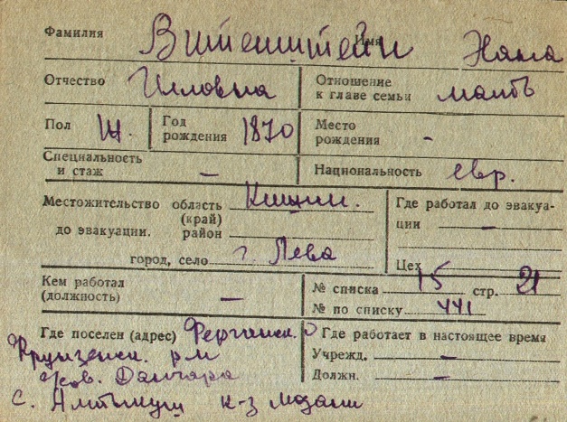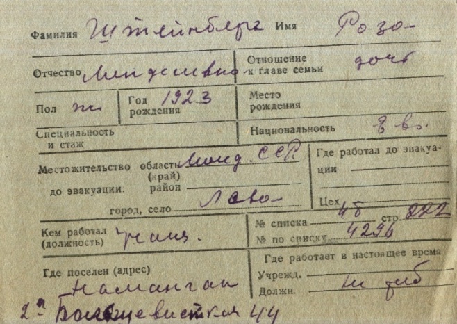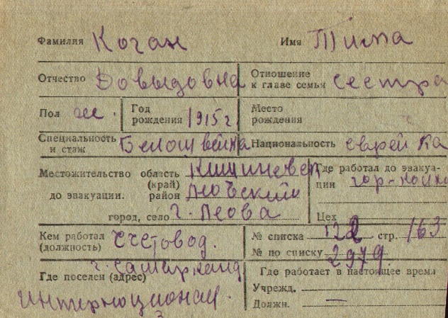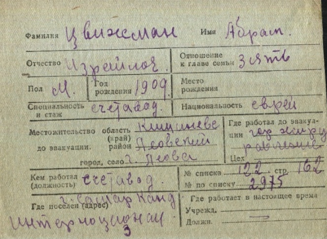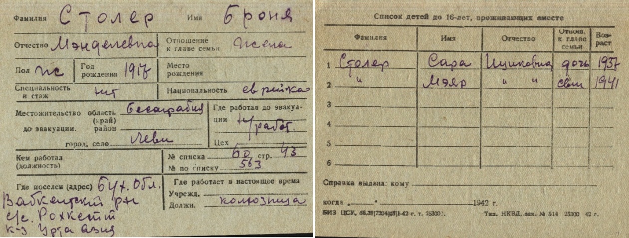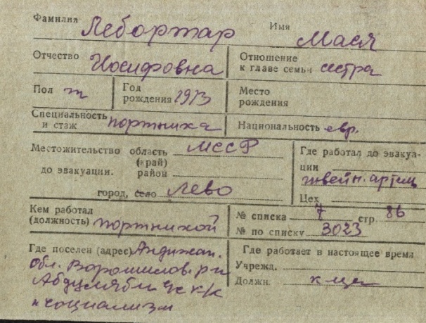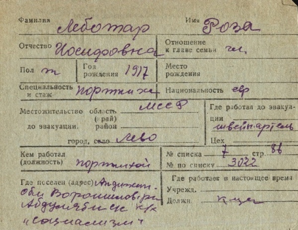 registration cards of Jewish evacuees and refugees