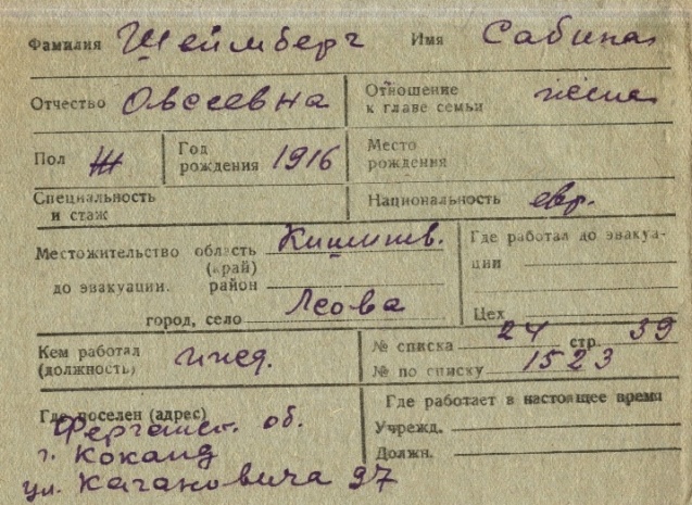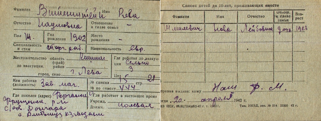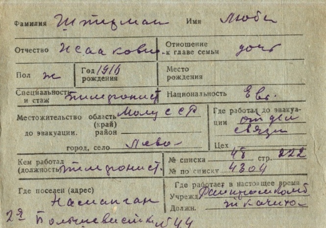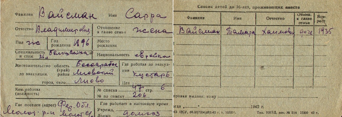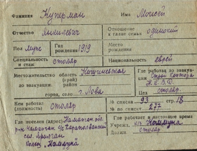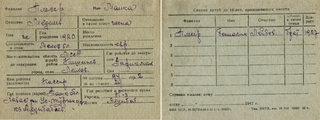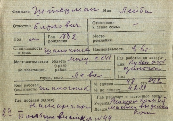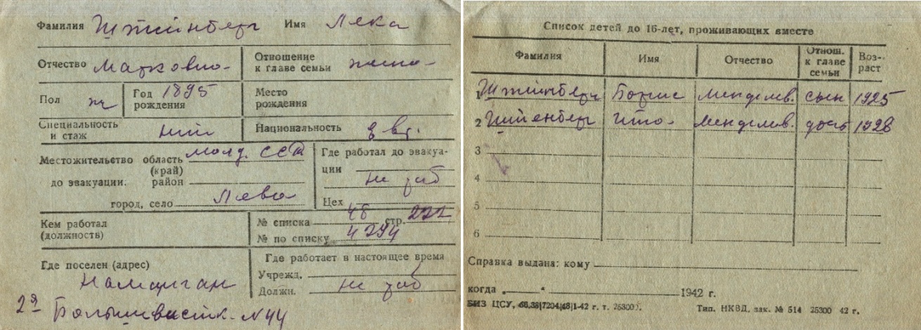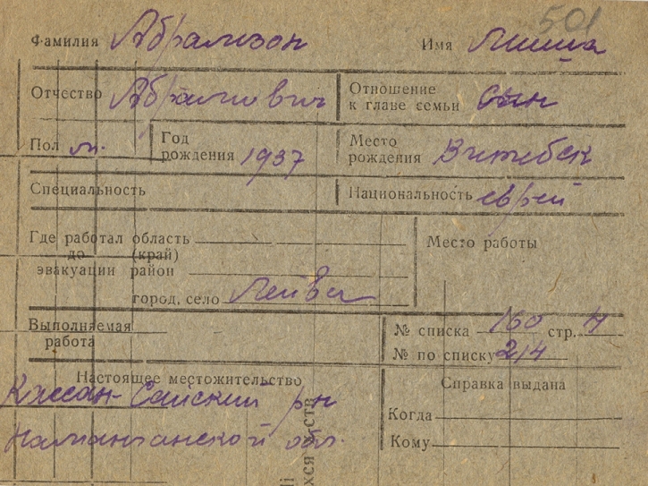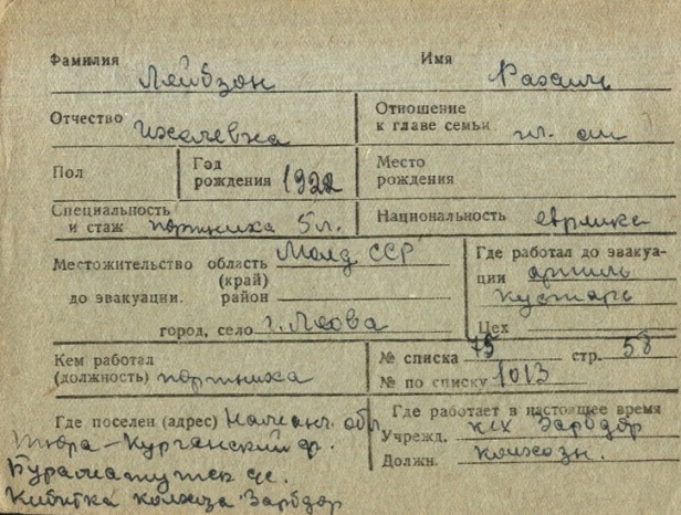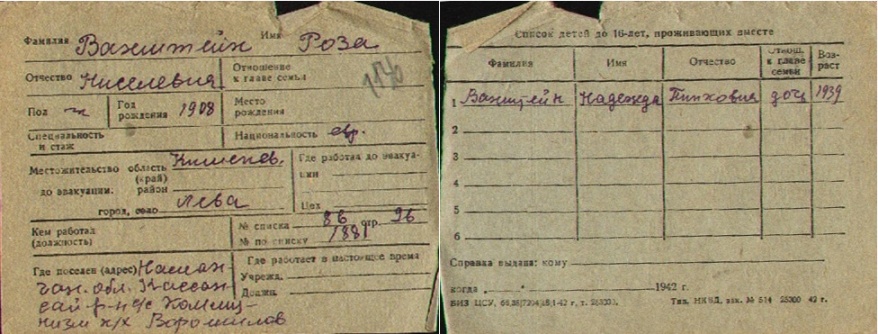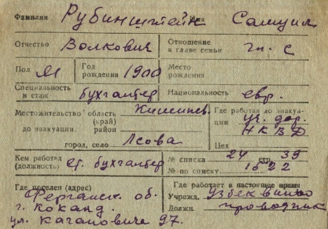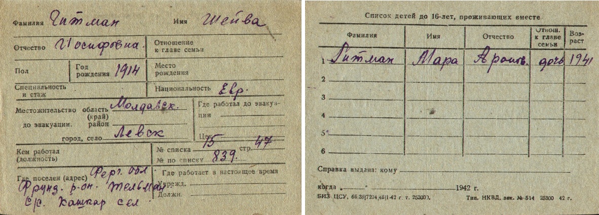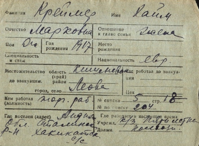 registration cards of Jewish evacuees and refugees