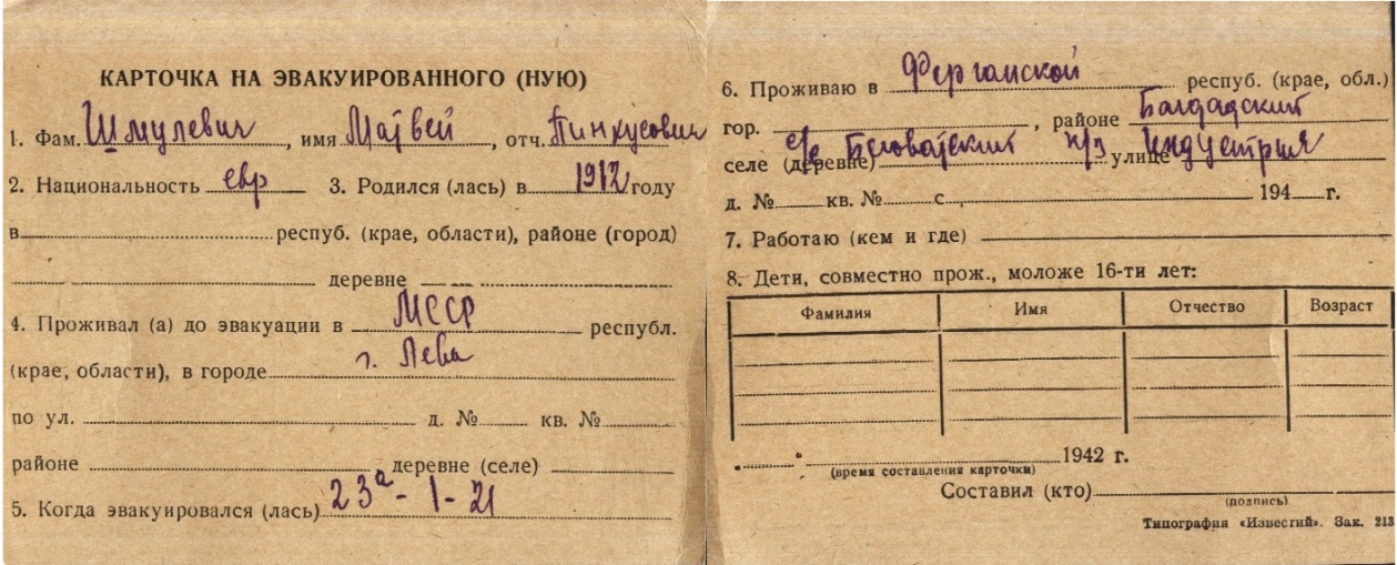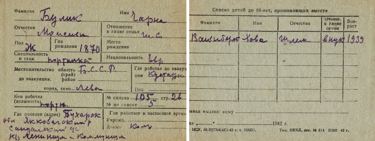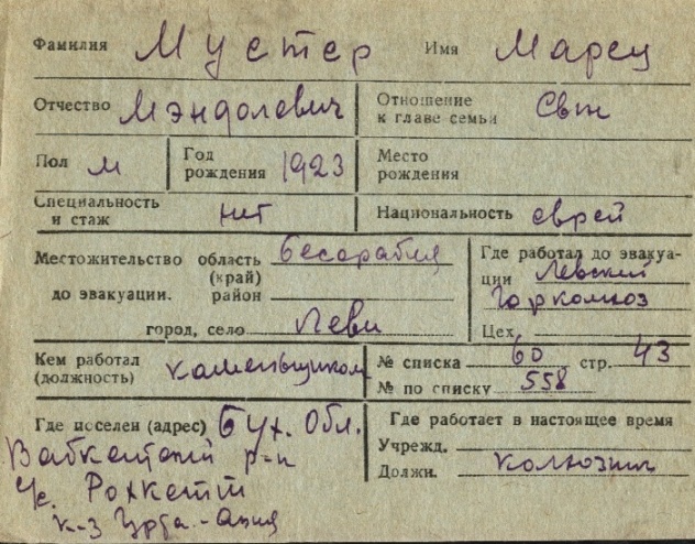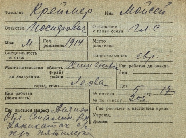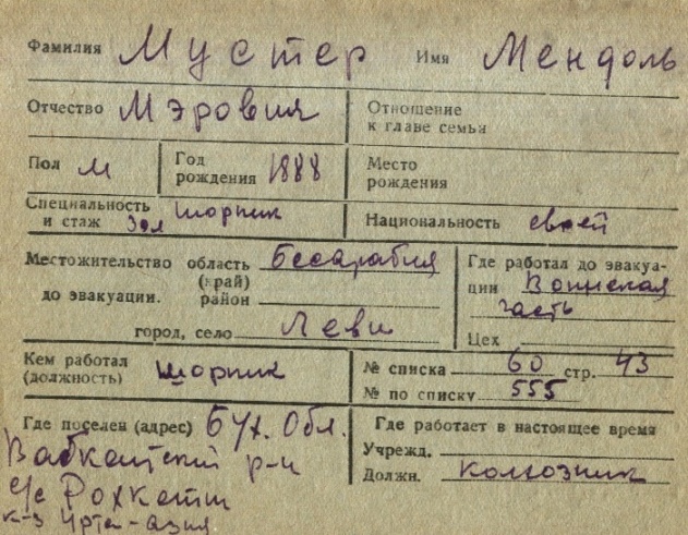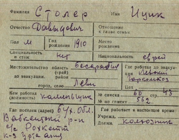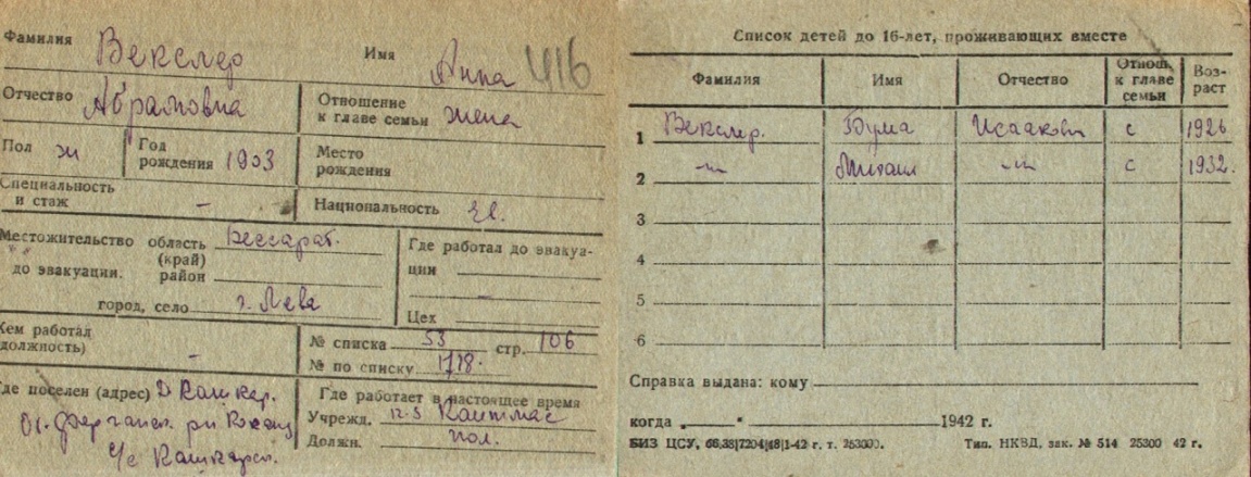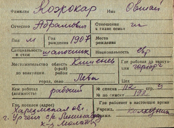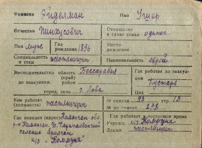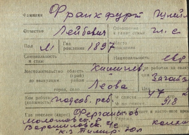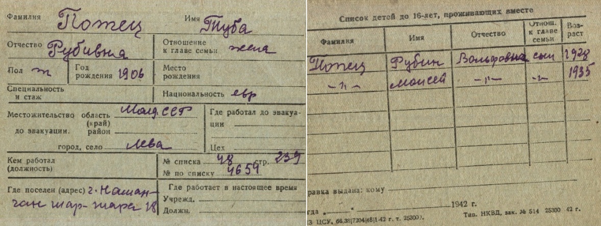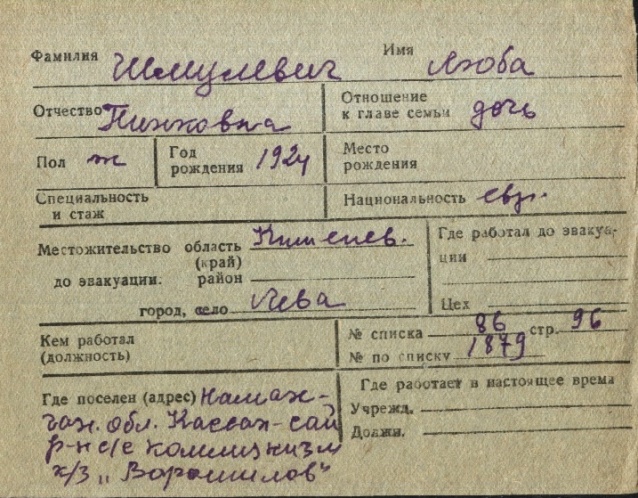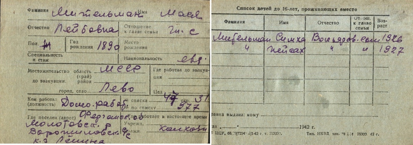 registration cards of Jewish evacuees and refugees