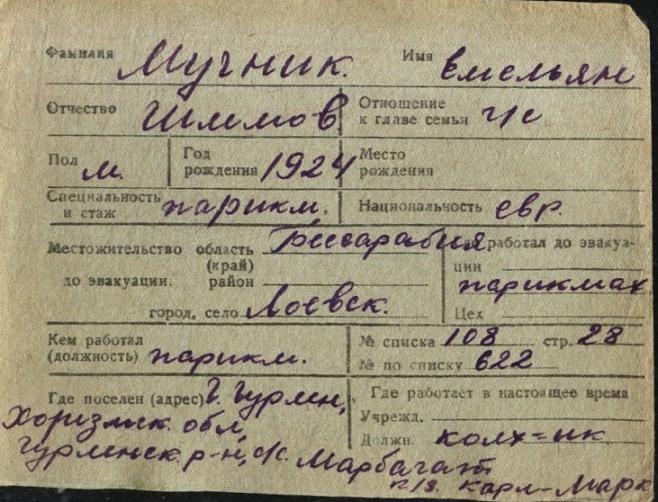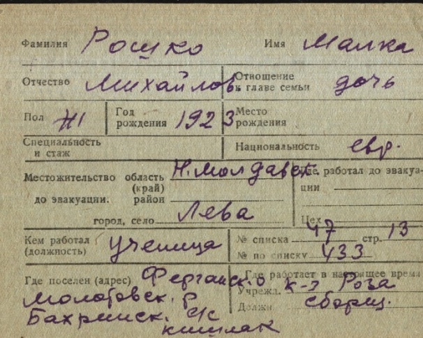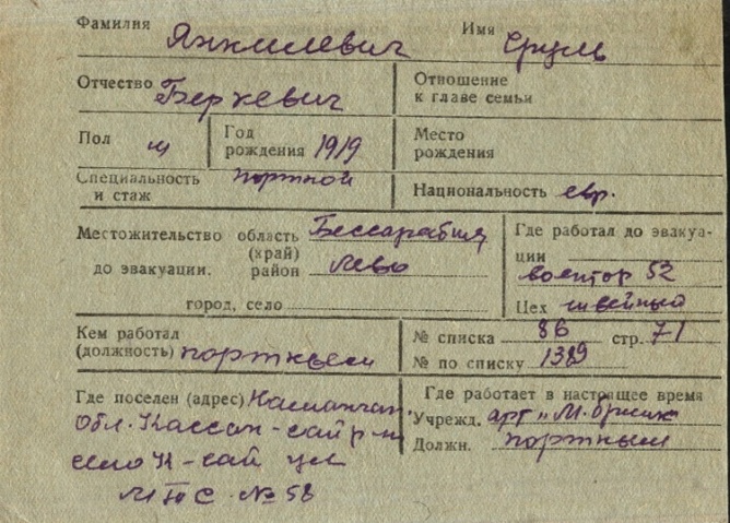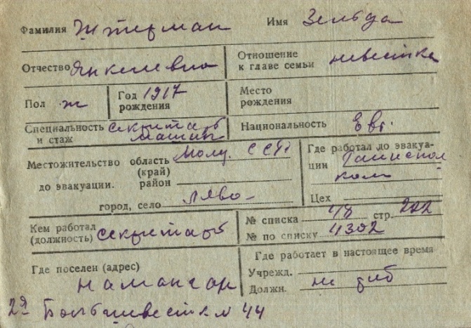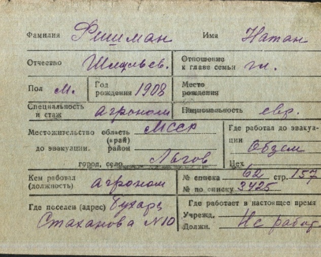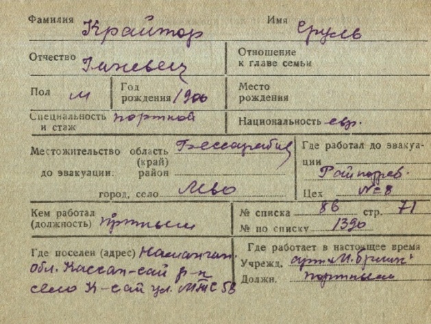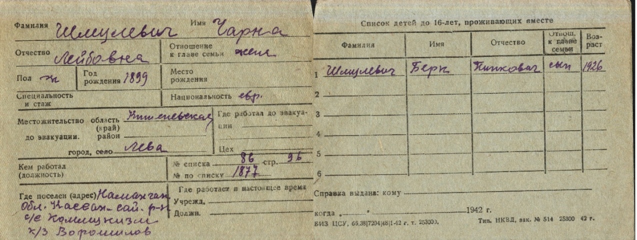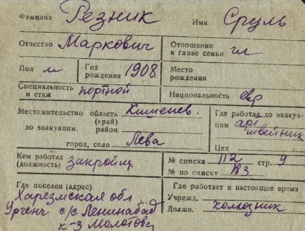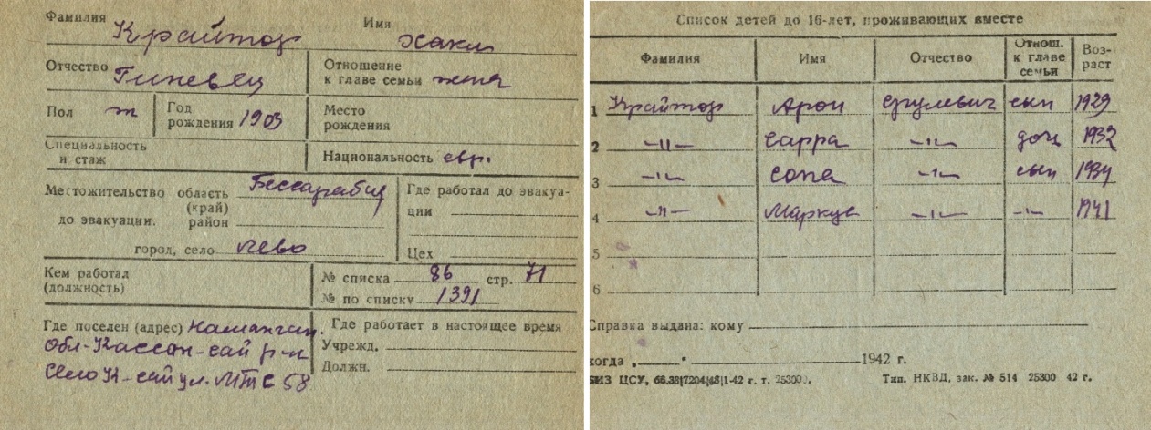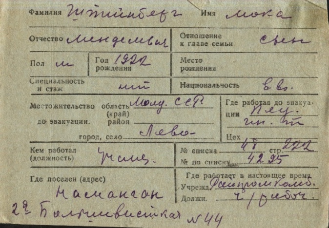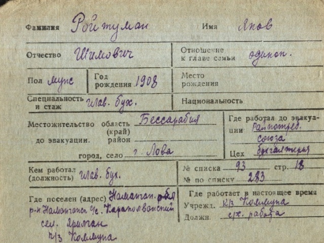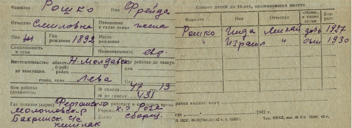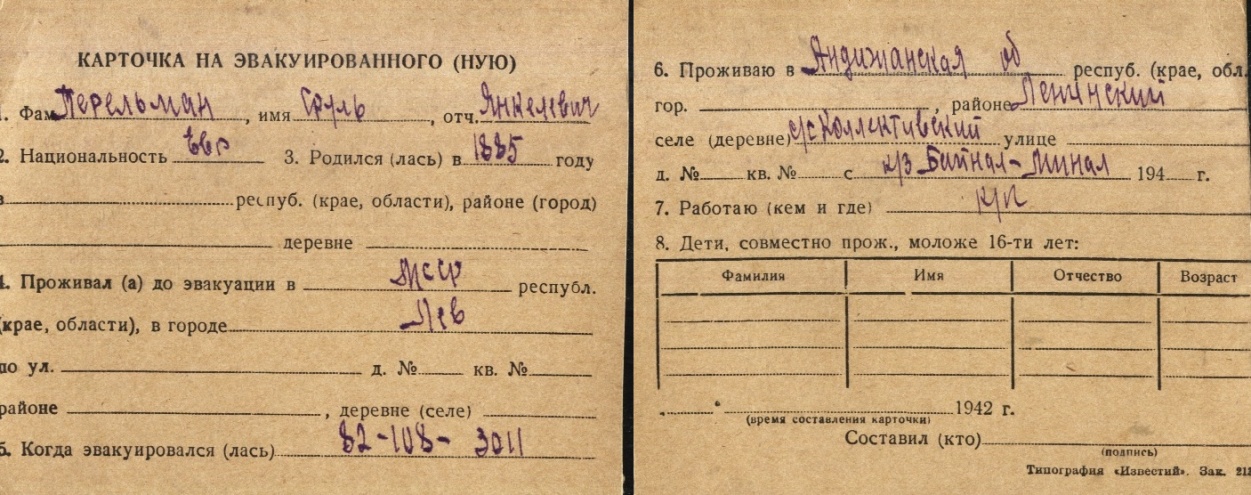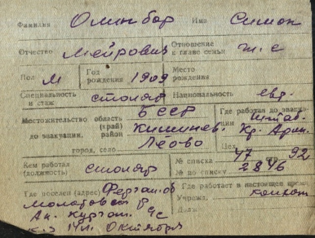 registration cards of Jewish evacuees and refugees