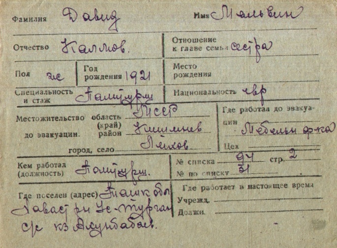 Turkmenistan) in 1941-1942.