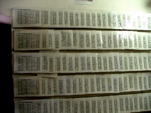 One wall of the room contains a list of all of the Munkács Jews murdered in the Holocaust.