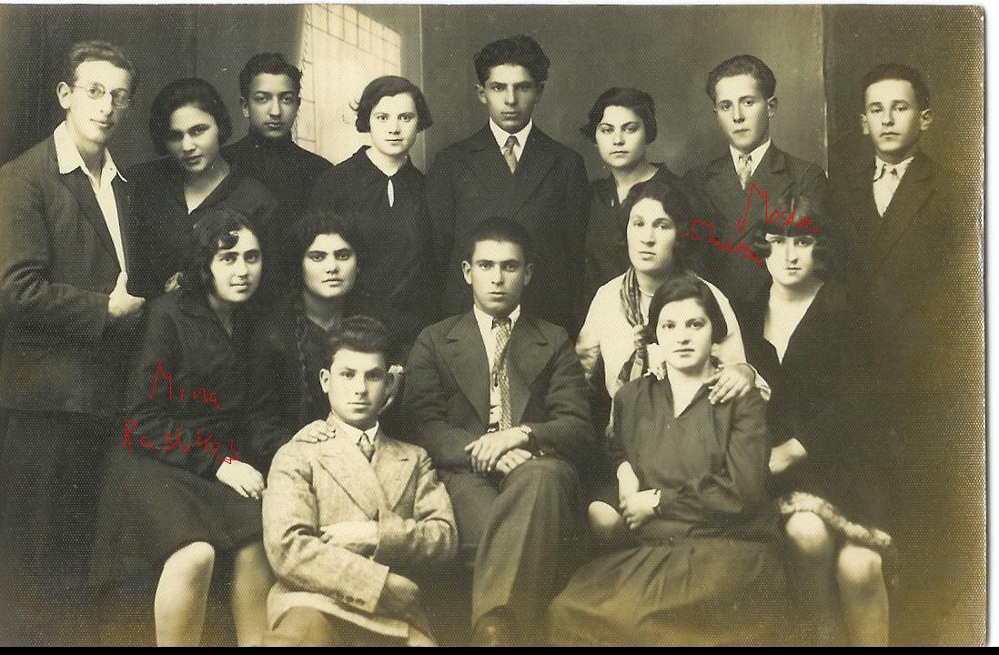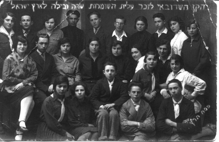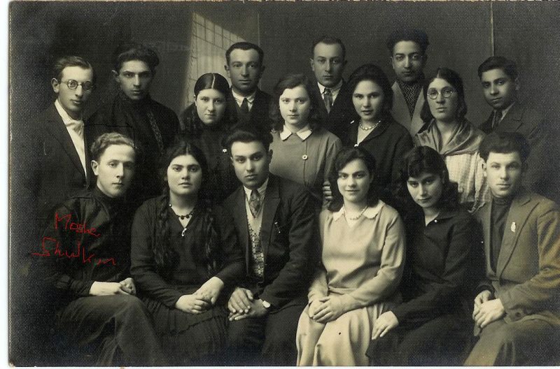![]() Hashomer, 1930, Moshe Shulkin standing fifth from the left. Second row second from the right (in white blouse) is Mina Raskes née Stein. |