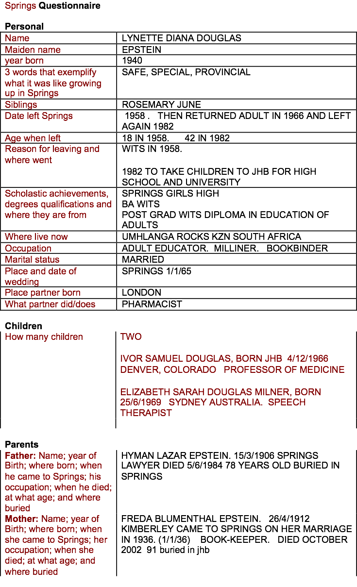 Douglas (nee Epstein), Lynette