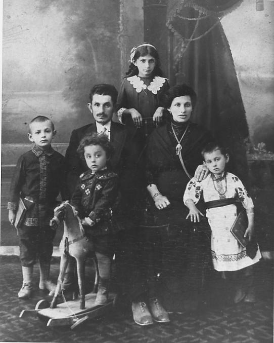Leib Goretsky, his wife Brukha Leah (nee Lubchenko), and their four oldest children. Leib was a fairly well-off shop keeper. He was killed in the 1920 pogrom.