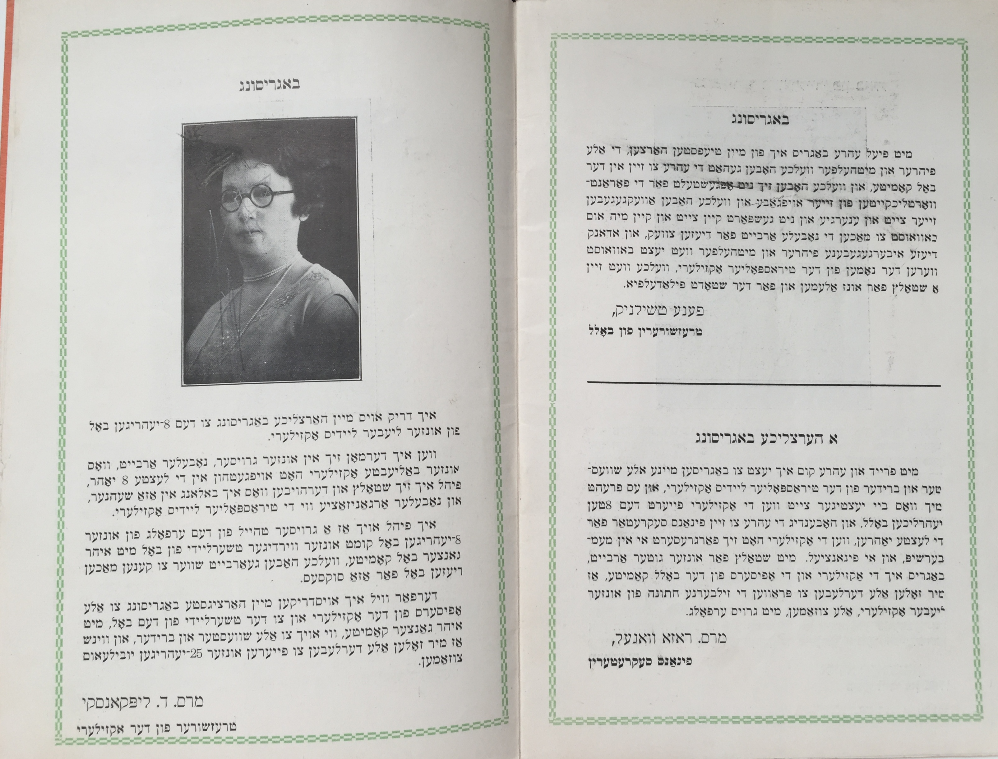 Mrs. Roza Vogel, Secretary of Finances (Bottom Right)