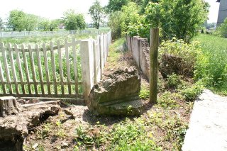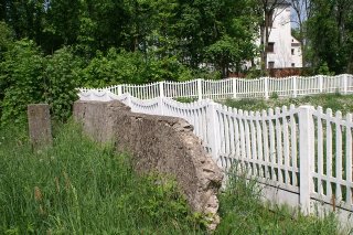 Directions: From Bialystok, take highway 19 south (through Bielsk Podlaski) for 64 km to the small town of Bocki. In town, beside the white church on the left (east), is a fragment from the masonry wall of the old Jewish cemetery (Images 2-4). Continue on highway 19. Just before you cross the Nurzec River, to the right and adjacent to the river, are the remains of a Jewish miqveh (ritual bath) (Image 1). Passing through town, the first road to the right, on the road to Jakubowskie, should be the remnants of the old Jewish cemetery (wall and one matzevah). The new Jewish cemetery could not be located in May 2007, but see Bagnowka gallery for images.