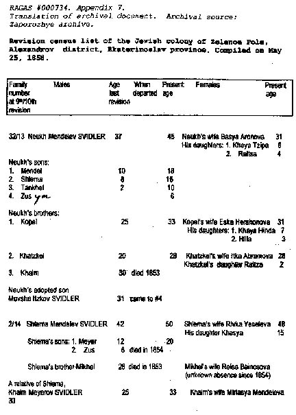Appendix M2: Revision census list of the Jewish colony of