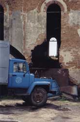 Ruzhany synagogue, the decoration of the arch over the door and lower windows still exist
