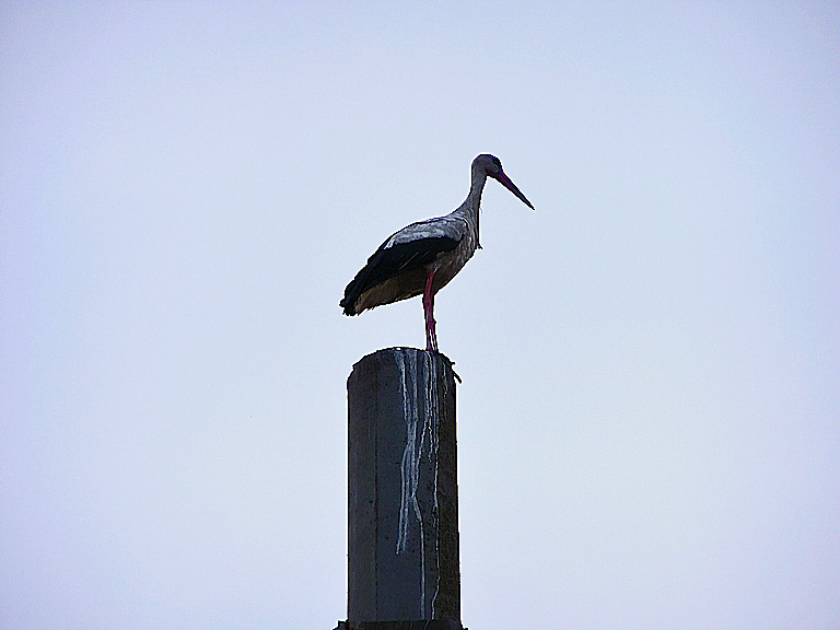 Stork on telephone pole.