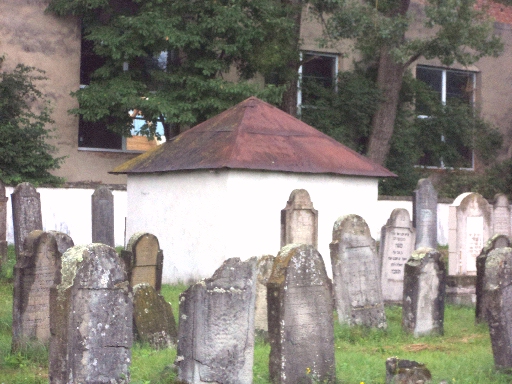 The Jewish cemetery, which is over 250 years old, is located outside of town, along a dirt road. It has a wall built around it and there is a caretaker who has the key to the door (contact information photographed below). The cemetery is well-maintained and contains two ohels (mausoleums). There was a guest register and it appears the cemetery is visited often by descendants.