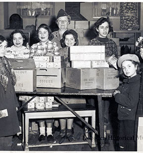 Naomi Schubin Greenberg's girls scout troop preparing to delivery cookies.