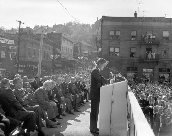 President John F. KENNEDY gave a speech in Monessen, on 13 October 1962, to a large crowd gathered in the center of the town.