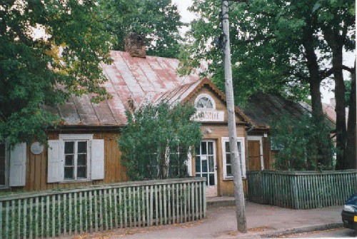 pharmacyThe ‘Vaistine’, the pharmacy belonged to the Jewish family Baras. The husband was a pharmacist and his wife was a doctor. They had one daughter called Ljuba. As Karolina, one of our eye-witnesses, recalls: Father Baras was very fond of his daughter and hugged and kissed her very often. The family was v one (the only one in the whole village ) and therefore attracted a lot of young children . They liked it very much to press the bell button and make a run for it. Karolina worked in Baras' household for one year. All of the Baras family were shot in 1941. After the big fire of 1930, Shapiras and his family had to look for another house, because their own house (between housenr. 100 and 101, see map) was burnt down. It was a big house divided into two parts. The two Jewish families who lived there were related to one another. Schmuel Shapiro and Sotcha Lang were brother and sister). late 1920’s, Rozalia, clockwise