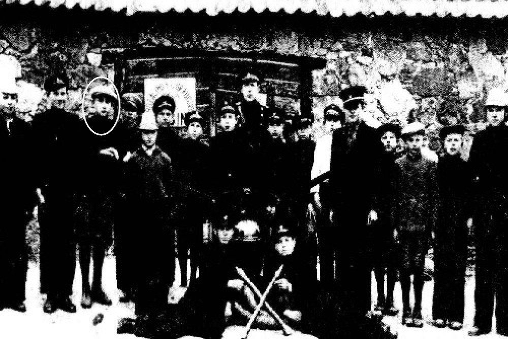 with Shapira's sonHe is the third boy from the left. He was a member of the young firemen-brigade. The picture was taken in 1935. All of the family Shapiras were shot in 1941. late