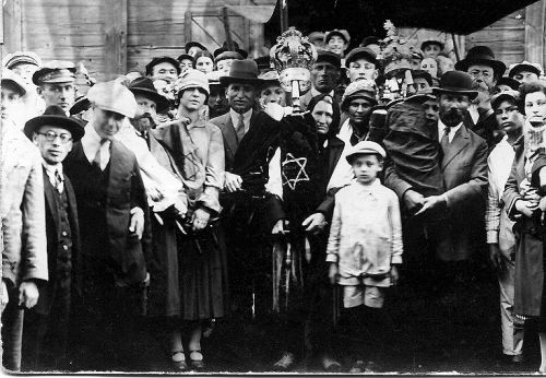 ![]() Explanation by: Monty Kramer "Uncle" = Solly Furman; at his right hand his wife Milly, carrying the given Torah scroll
