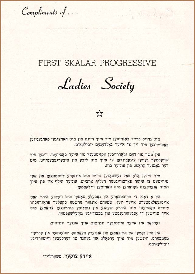 First Skalar Progressive Ladies Society: Ida Zucker, President