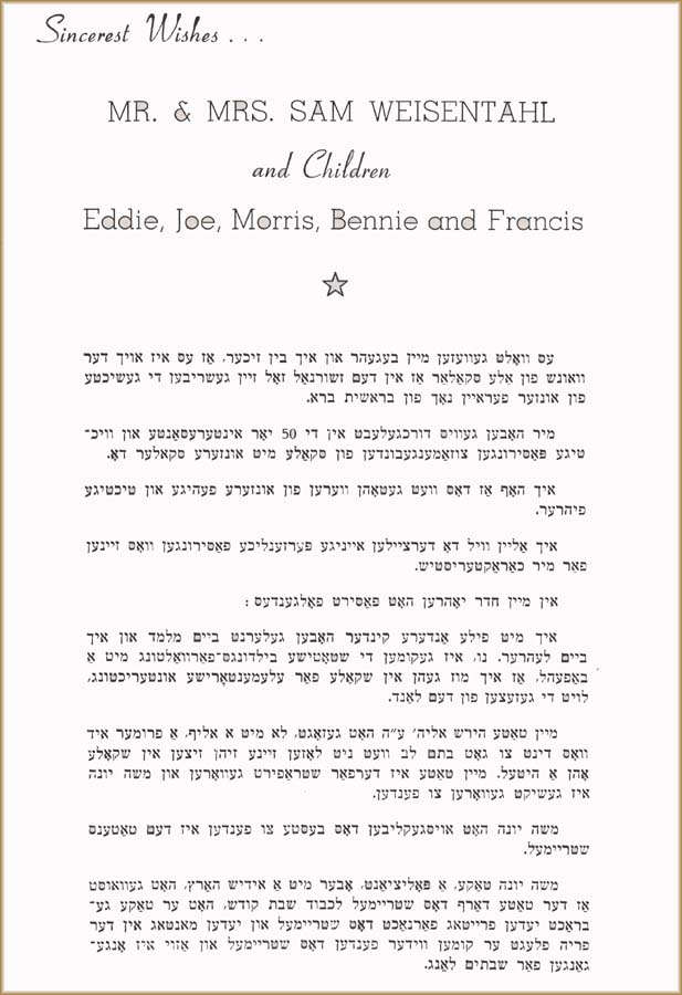M/M Sam Weisenthal, Eddie, Joe, Morris, Bennie, and Frances