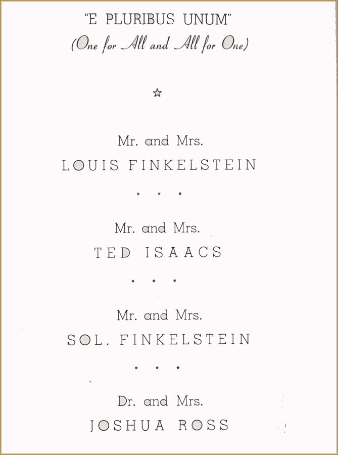 MM Louis Finkelstein, MM Ted Isaacs, M/M Sol Finkelstein, Dr/M Joshua Ross