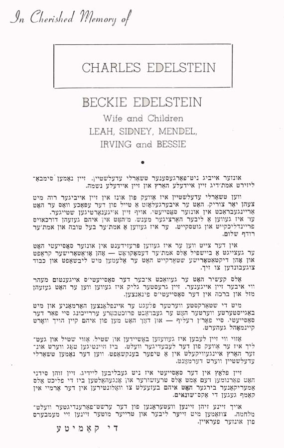 Beckie, Leah, Sidney, Mendel, Irving, and Bessie Edelstein, IMO Charles Edelstein
