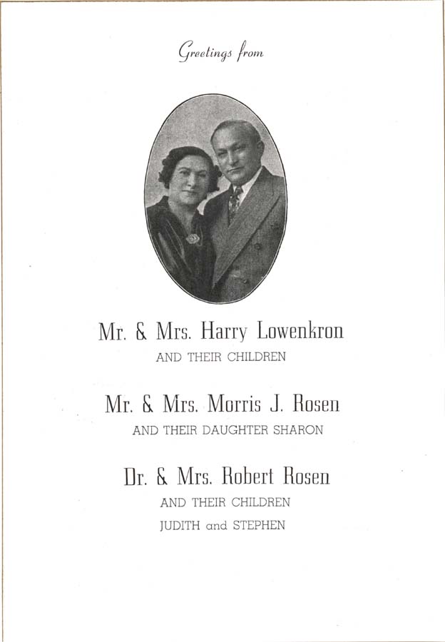 Greetings: M/MHarry Lowenkron, M/M. Morris J. Rosen, M/M Robert Rosen