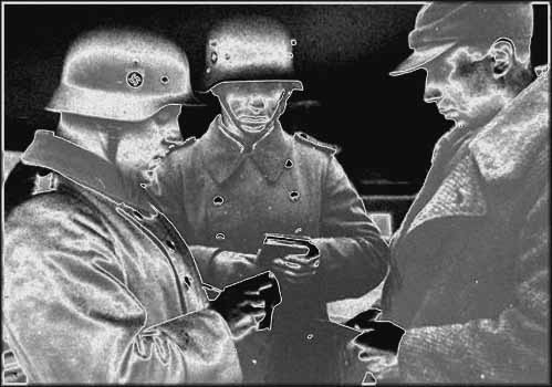 In the arriving taxi were the vanguard soldiers. Immediately afterwards there arrived more trucks, with soldiers armed with rifles. The trucks traveled slowly down the street and the soldiers jumped from the vehicles and assumed positions in the streets, across from the Jewish houses.