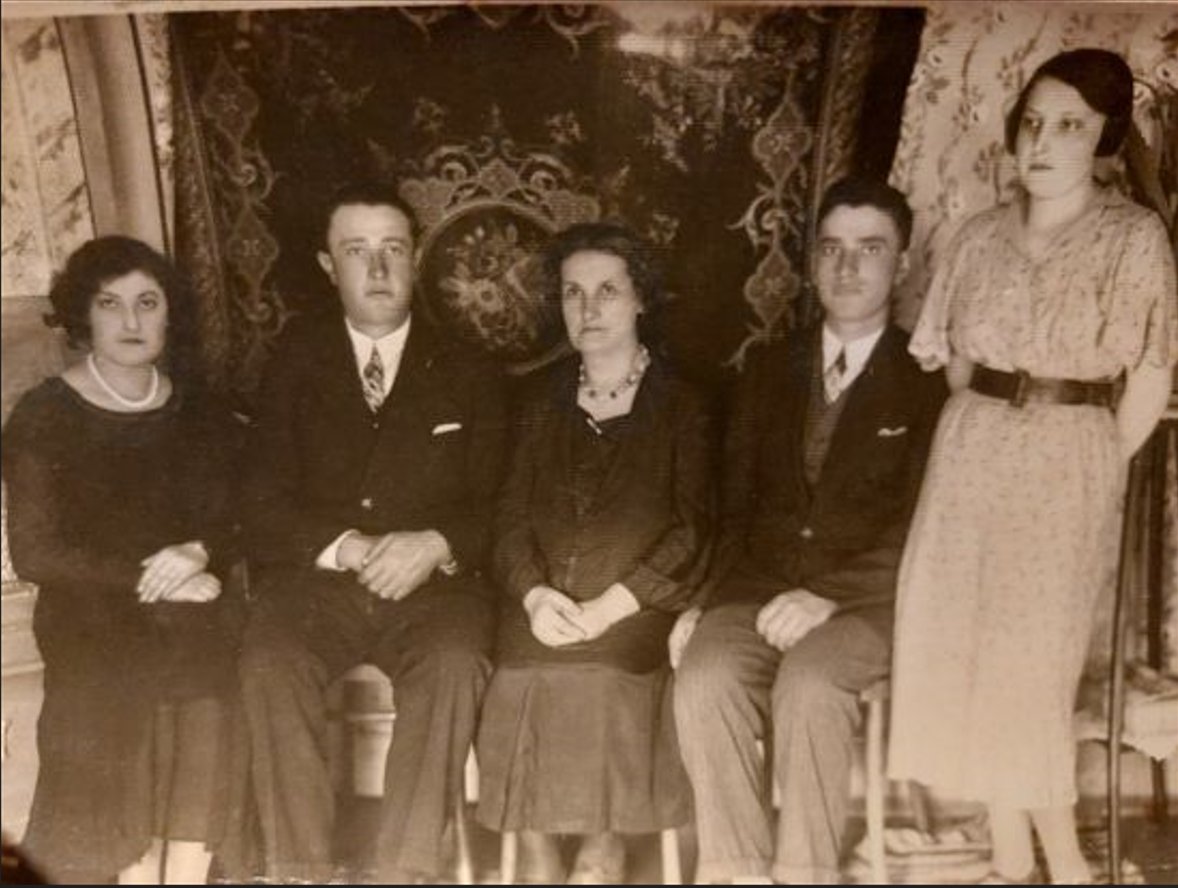 Photo from Skala in the 1930's of her mother Rivka/Rebezia with 4 of her children: l-r: Sima, Aharon (1907-1990), Rivka, Eliyahu?(1912-1943), Yehudit (1918-1995?)