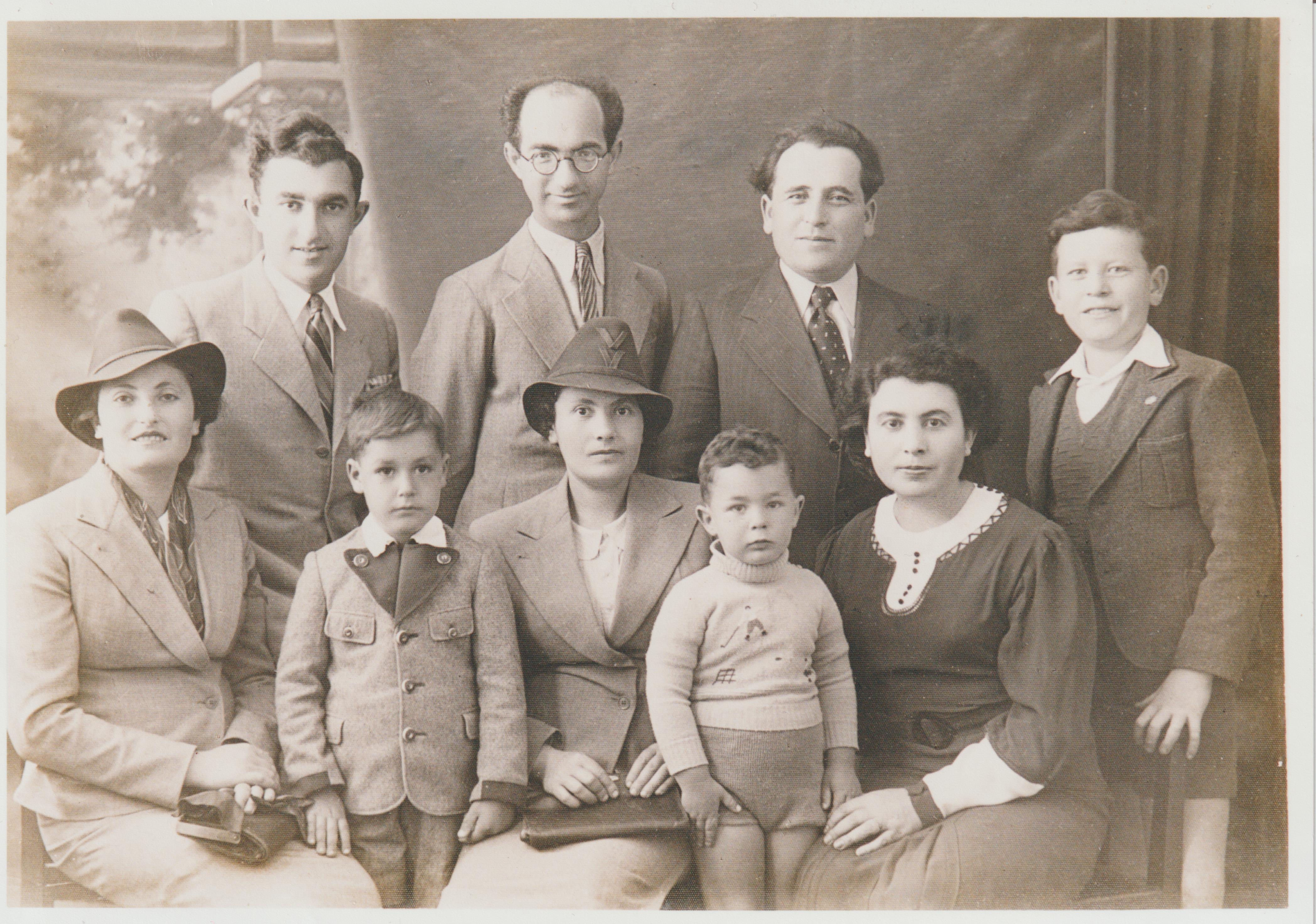 Photo from around late 1939 in Israel: Yaffa (on the right), next her sister Sosie Hudie and Sima Lavitz (Edelman) 1911-1952, all with their families. On the right is her son Yerachmiel named after her father