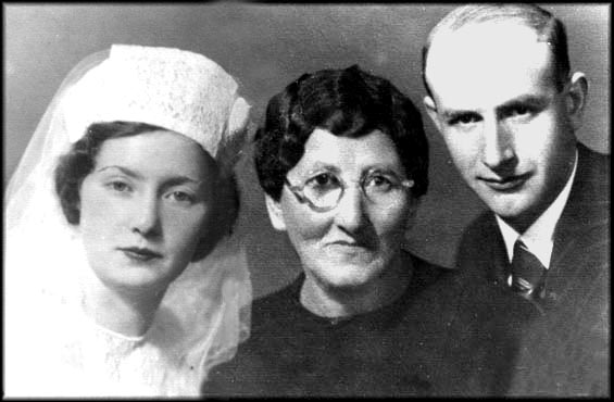 | Family of ESTHER WIESENTHAL GOTTESFELD (born 1869; daughter of Leah and Josef Leib Wiesenthal). Left to right: DORA GOTTESFELD, ESTHER WIESENTHAL GOTTESFELD, JOSEF GOTTESFELD (born 1906). When the Nazis were approaching Skala, Esther and her family fled to Lvov, where they subsequently perished. Dora and Josef had a baby (name unknown), who also died in the Holocaust.