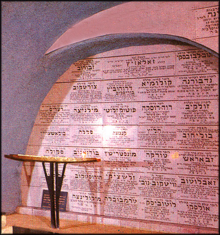 Martef Ha-Shoa, the memorial to the six million in the Holocaust Cellar in Jerusalem. In the photo on the right, the plaque dedicated to Skala is directly above the table.