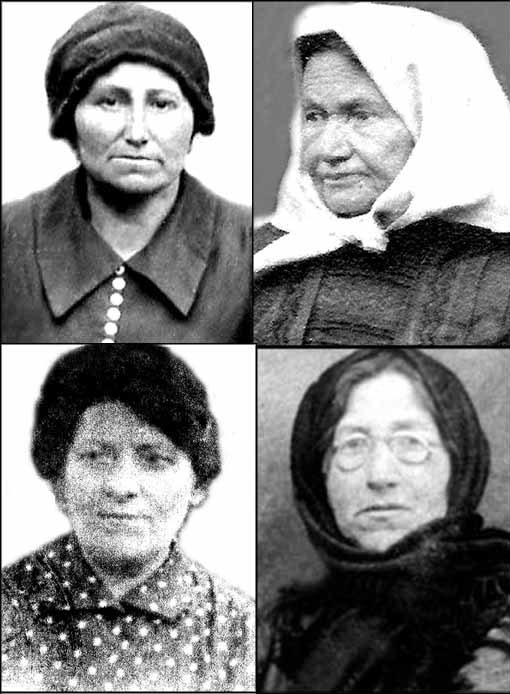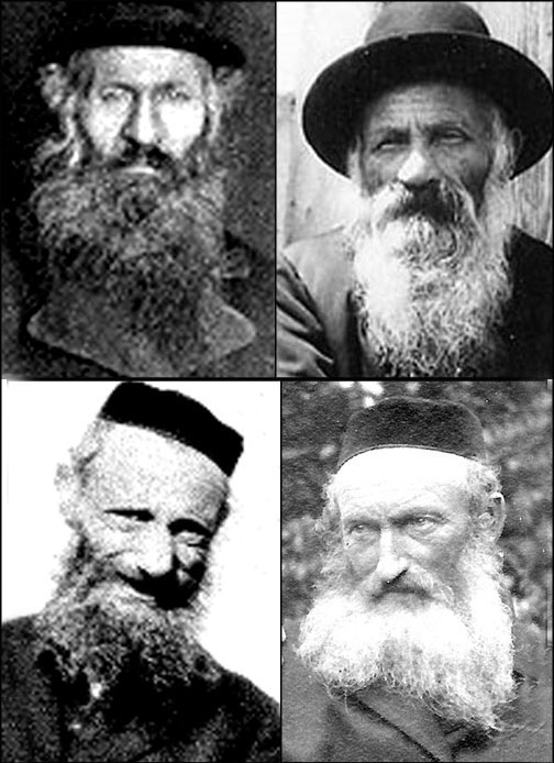![]() Some observant men in Skala wore the black hats of chasids, while others wore kipot. Left to right, top to bottom: Meier, Hersh Eliyah, and Zechariyah Wiesenthal; Mordkho Wolf Wasserman. |