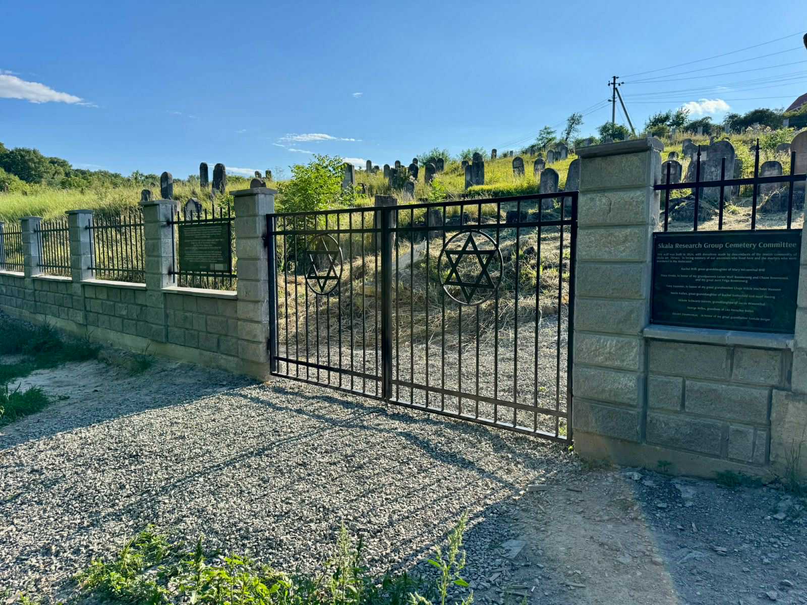 | The Skala Research Group (SRG), whose members are individuals with ancestors who lived in the Skala shtetl, is happy to announce the building of a new wall to protect the Jewish cemetery in Skala Podil'ska, Ukraine. A wall had previously been erected by members of the Skala Benevolent Society when its president was Max Mermelstein z”l. This wall, built almost 30 years ago, had deteriorated and needed to be replaced. The new wall was funded by members of the SRG and the European Jewish Cemeteries Initiative (ESJF), led by Philip Carmel and funded by the European Union, which gets the majority of its funds from Germany. The building of the new wall was managed by Kyiv resident Alex Bessarab and was overseen by ESJF. SRG members contributed most of the funding. |