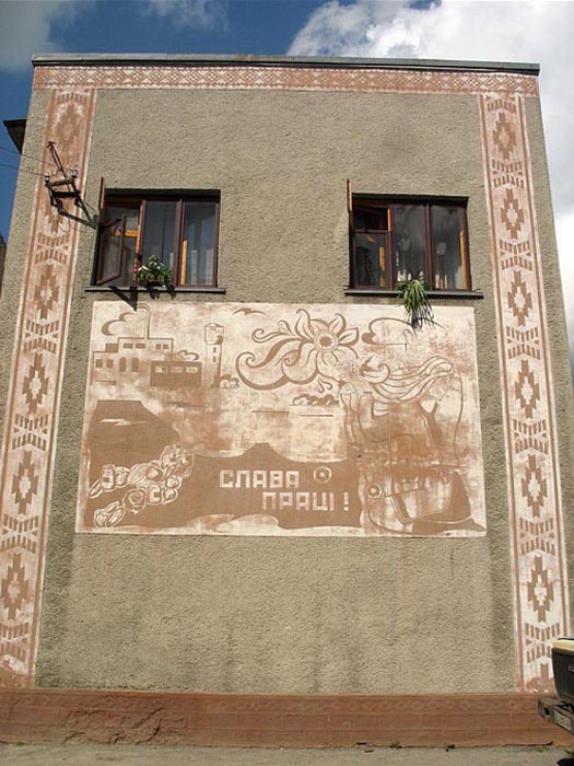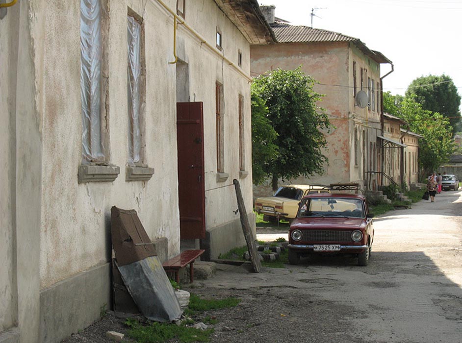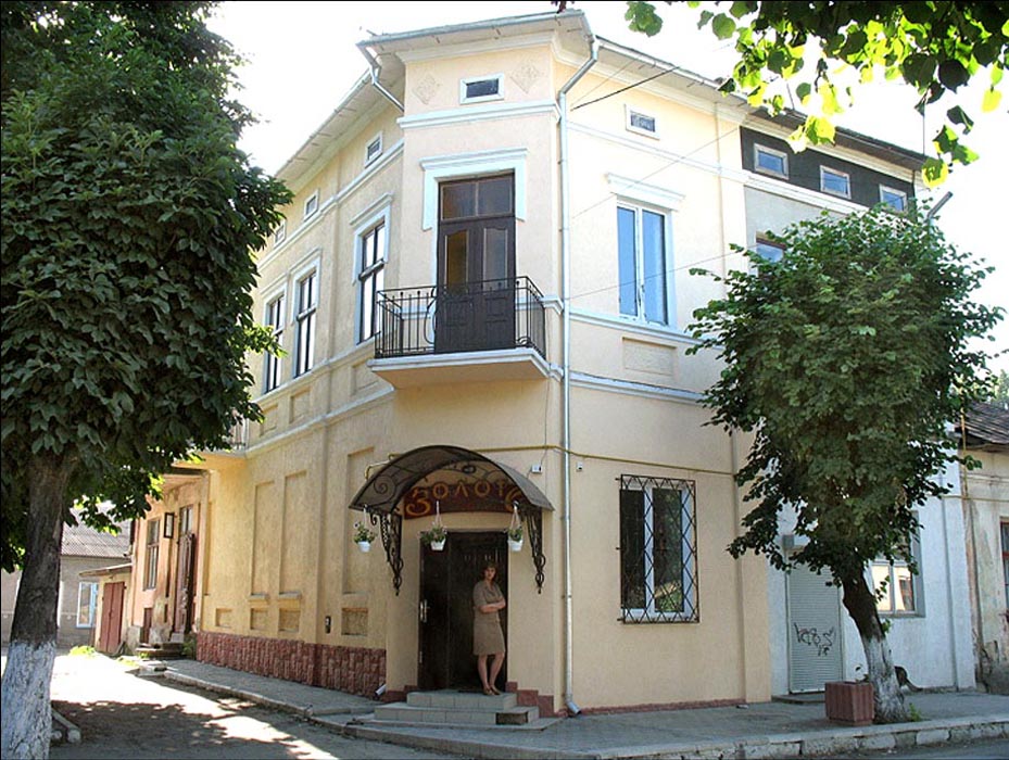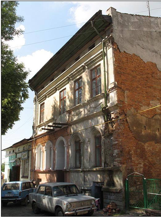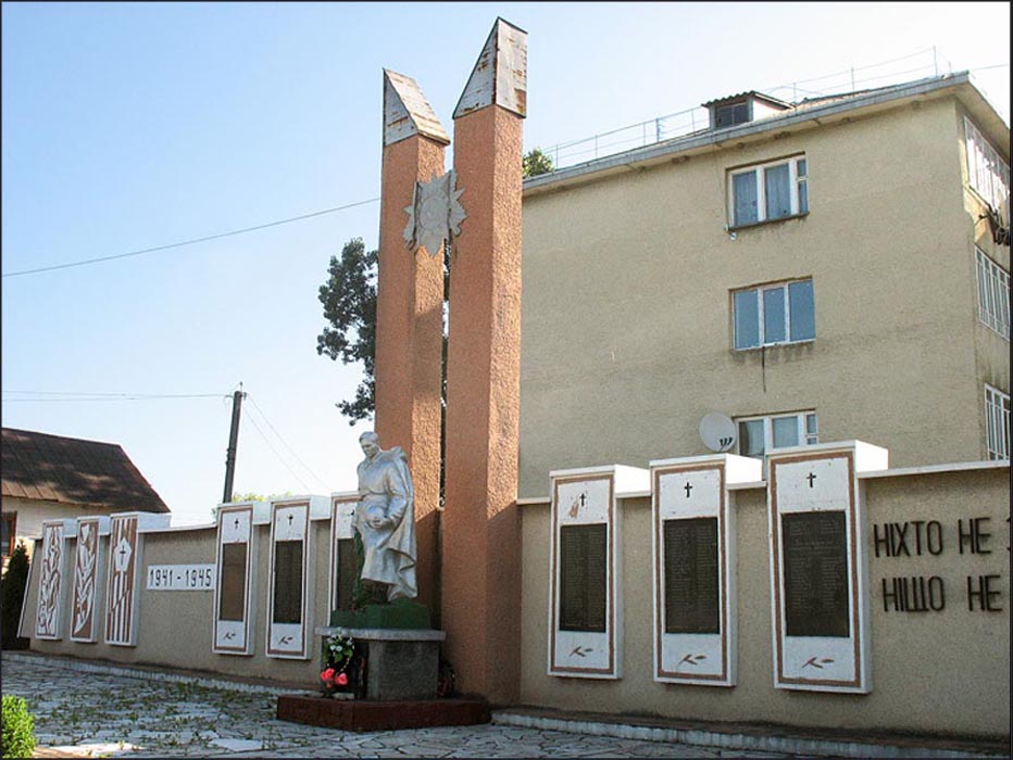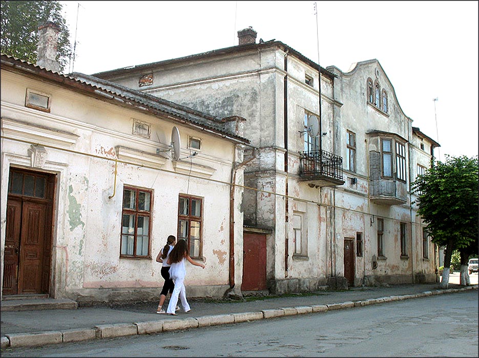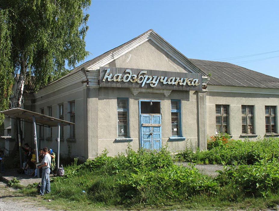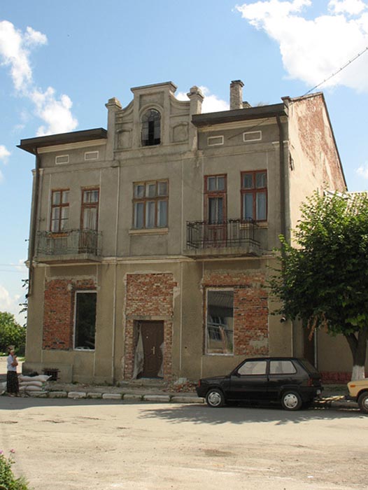 ![]() The monument to Soviet soldiers who fell in World War II | ![]() A house in the center of town, now a store | ![]() The former Polish Community Center, now the town library | ![]() Zbruch grocery store |