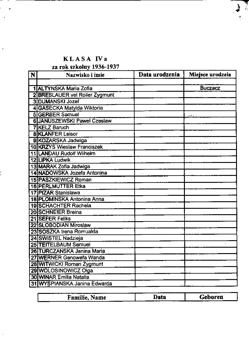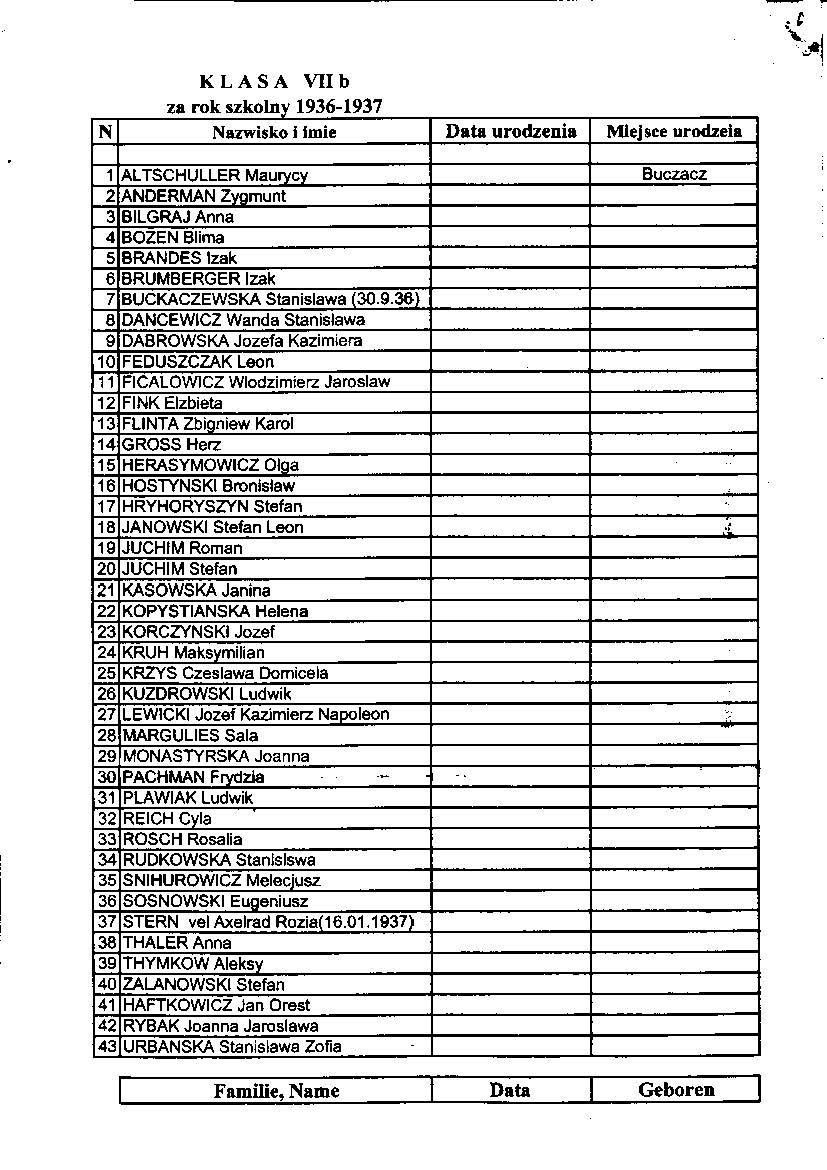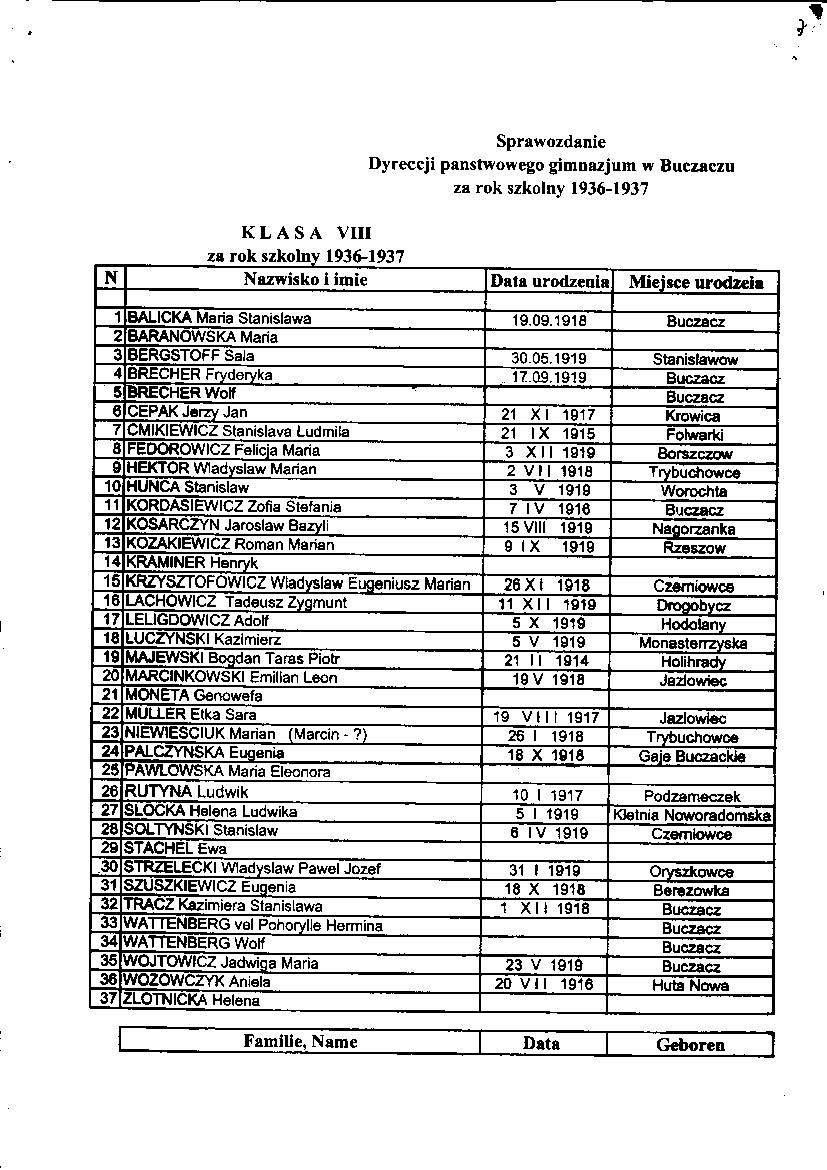 List of pupils who received a passing grade Buczacz Gimnazjum in the years 1936-37