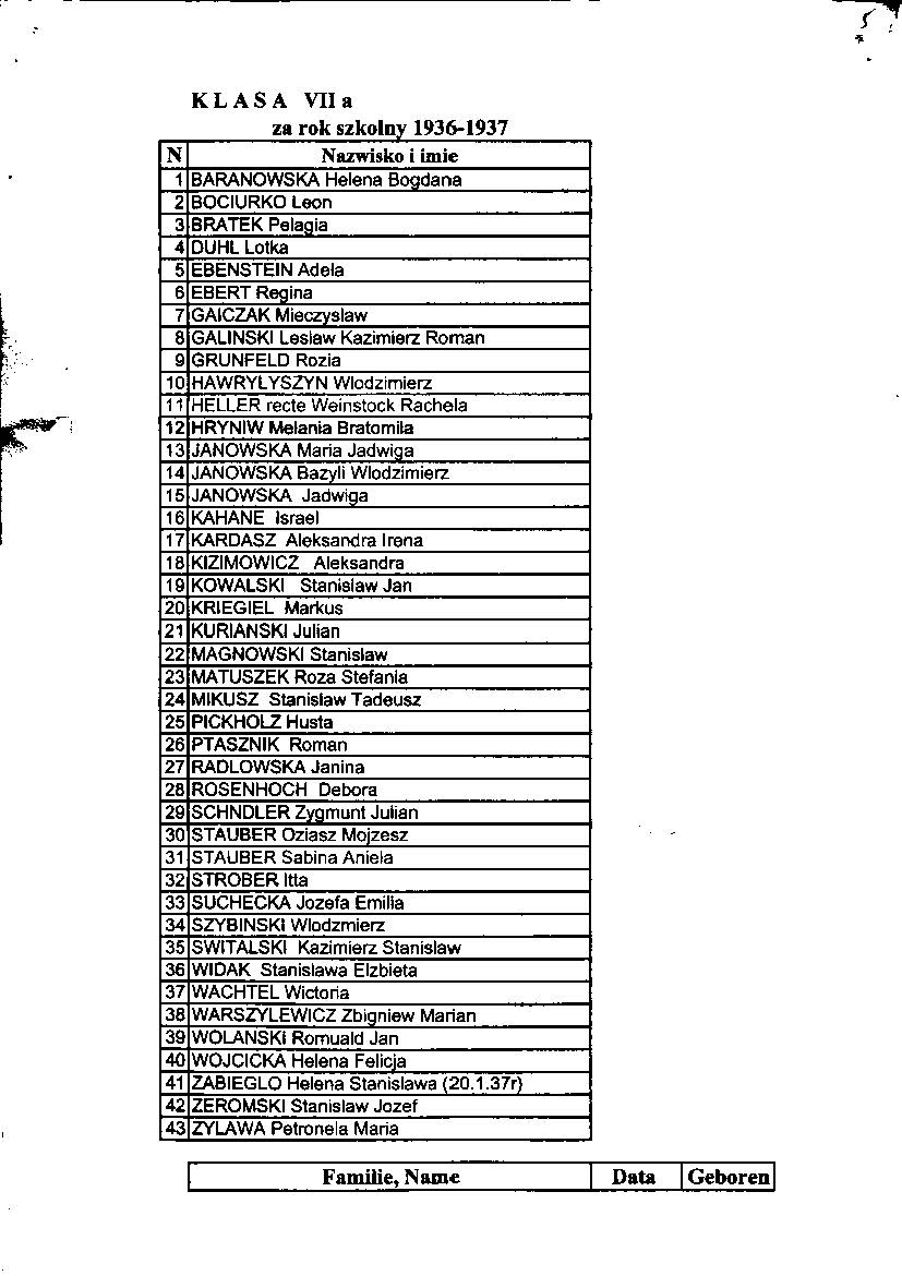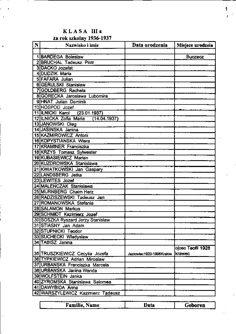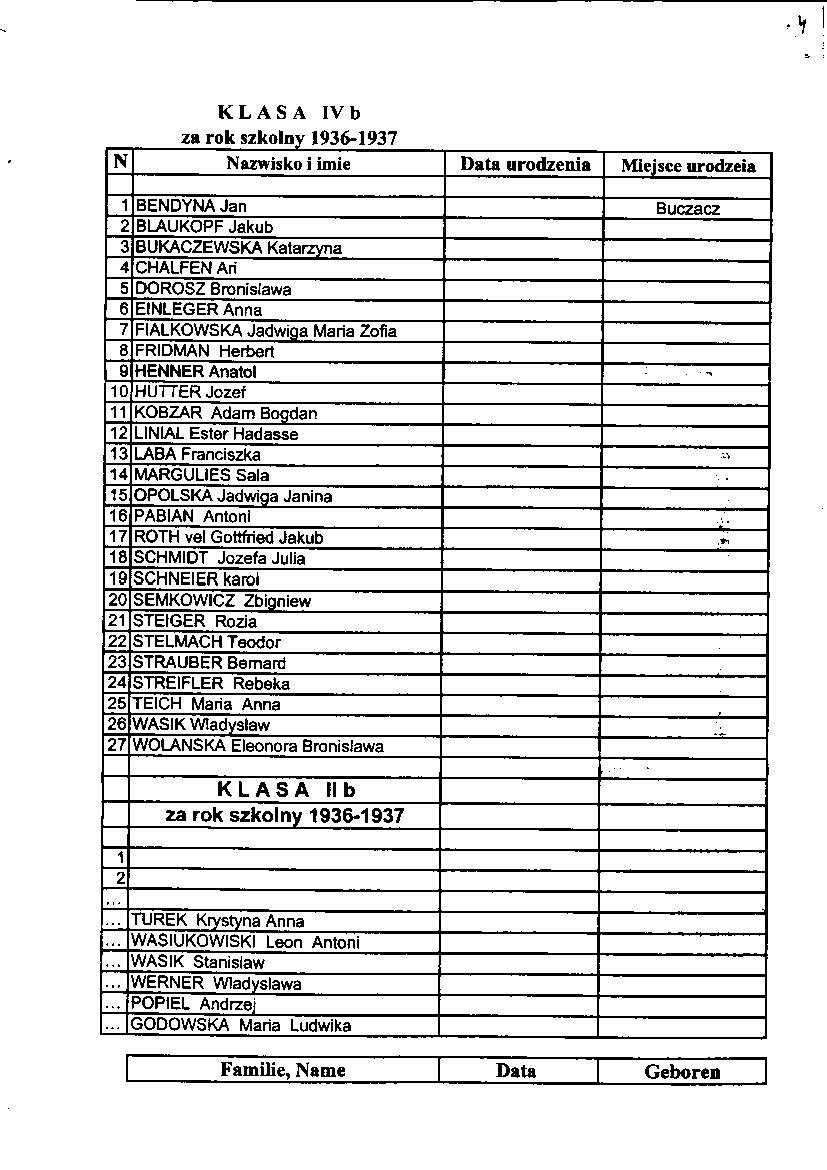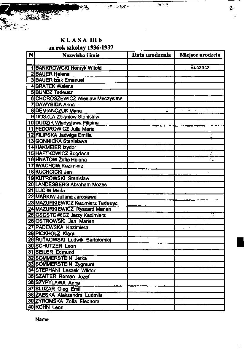 List of pupils who received a passing grade Buczacz Gimnazjum in the years 1936-37